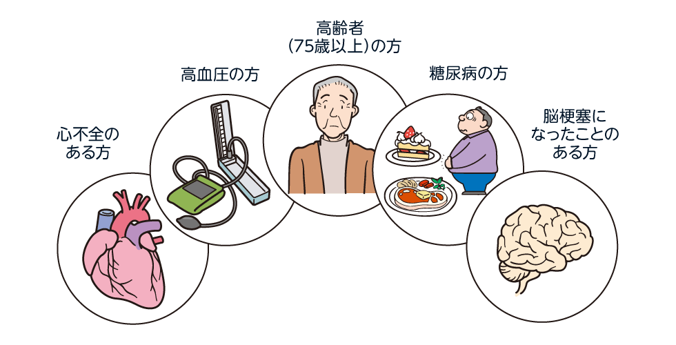 動脈硬化の原因となり、脳梗塞の危険性が高くなります。 - 不整脈(心房細動)